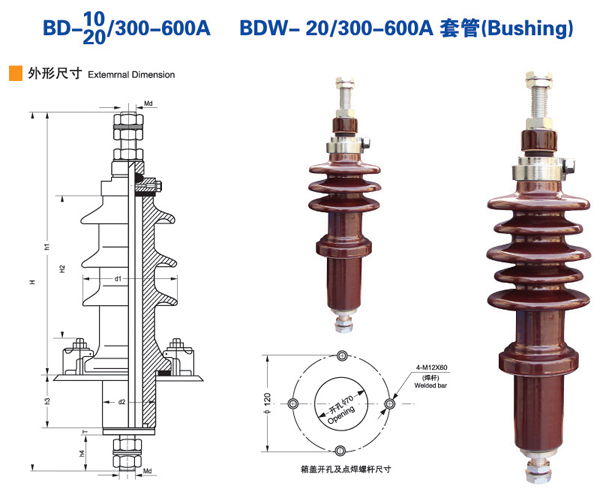 接(jie)線闆、瓷(cí)件、導電(diàn)杆和籌(chóu)鋁合金(jīn)法蘭組(zǔ)成。