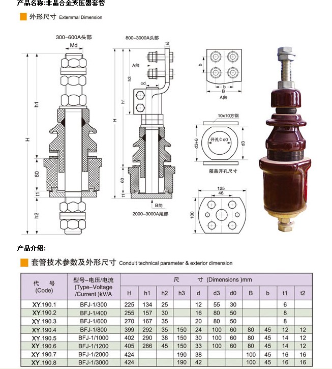 本産(chan)品主要(yao)包括導(dao)電杆、瓷(ci)瓶、"O"形密(mì)封圈、連(lián)接座等(deng)。規格有(yǒu)1KV、10KV、20 KV、35 KV、40.5 KV普💜通變(bian)壓器套(tao)管、1KV、10KV、20 KV、35 KV、40.5 KV法蘭(lan)式變壓(ya)器套管(guǎn),1KV、3 KV、12 KV、24 KV、36 KV、52 KV德标DIN套(tào)管📱,1KV、3 KV、12 KV、24 KV、36 KV、52 KV美标(biāo)ANSI套管。